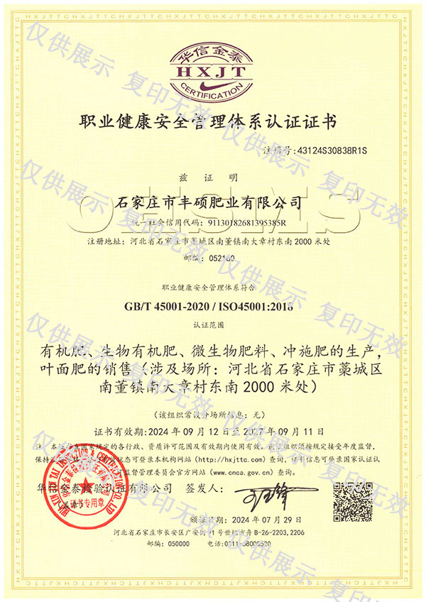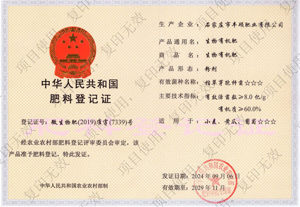石家莊市豐碩肥業(yè)有限公司是一家集新型肥料的研發(fā)、制造、營銷、服務(wù)于一體的高新技術(shù)企業(yè),公司自2008年創(chuàng)辦以來,一直致力于新型肥料的技術(shù)研發(fā)和市場推廣。公司組建了豐碩新型肥料研究中心(院士專家企業(yè)工作站),自主知識(shí)產(chǎn)權(quán)研發(fā)團(tuán)隊(duì)專業(yè)科研人員20余人,獲得了多項(xiàng)肥料國家發(fā)明專利。公司目前已擁有發(fā)酵類有機(jī)肥、微生物菌劑、生物有機(jī)肥、土壤調(diào)理劑、大量元素水溶肥、含腐植酸肥料、含氨基酸肥料、中微量元素肥料等8大品類,“金維克”、“豐碩沃農(nóng)”等2大自有品牌,擁有20多個(gè)暢銷品種。目前,我公司已經(jīng)通過了“ISO9001 質(zhì)量管理體系認(rèn)證”、“ISO14001 環(huán)境管理體系認(rèn)證”、“OHSAS18001 職業(yè)健康管理體系認(rèn)證”。...